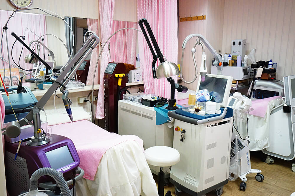 院內的診療項目包括:皮膚科診所 、脈衝光特別門診、除皺特別門診、青春痘、黑斑特別門診、果酸換膚特別門診、美膚諮詢特別門診。因院內看診人數眾多,建議提前預約掛號再行前往喔!