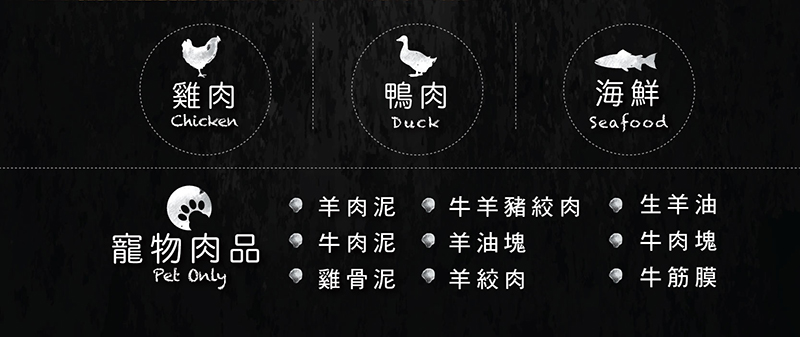 除了牛、豬、雞、羊、海鮮以外,店內也有販售專給寵物吃的肉泥喔!
