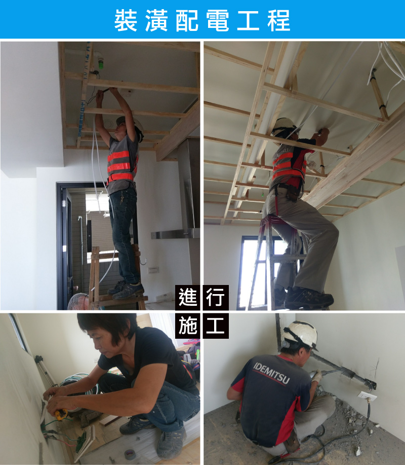 安裝配電講究的是專業、精準和俐落,電線配置後雖然隱藏在天花板上,但師父不會因此而亂塞亂放,而是將電線整理好,並在施工過程中穿上防塵套,避免鞋子弄髒地板!