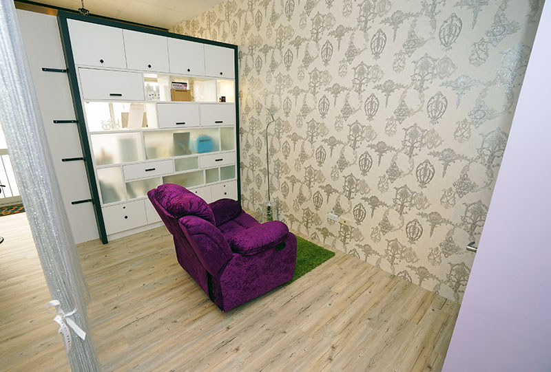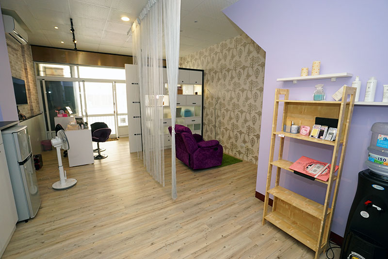為打造整潔舒適的空間,讓客人來到店內感到完全的放鬆,「朵菈形象美學館」採用木質地板,提升空間的清新感,整齊的擺設和粉紫色的牆面則給人舒服的氛圍。
