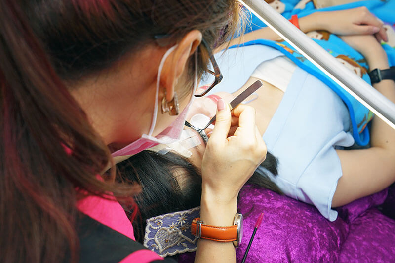 接睫毛如果技術不夠專業、動作不夠輕柔,就容易讓客人感到不適,所以小慧總是小心翼翼的處理每一根睫毛,在細節上毫不馬虎。