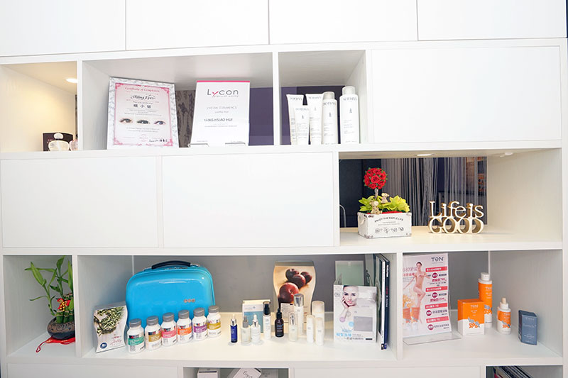店內使用的產品都透明化的展示出來,任客人清楚知道並安心使用。