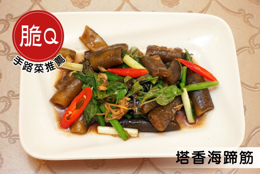 塔香海蹄筋,海蹄筋的口感是Q脆的,加上用九層塔下去拌炒出香氣,口感特別開胃!