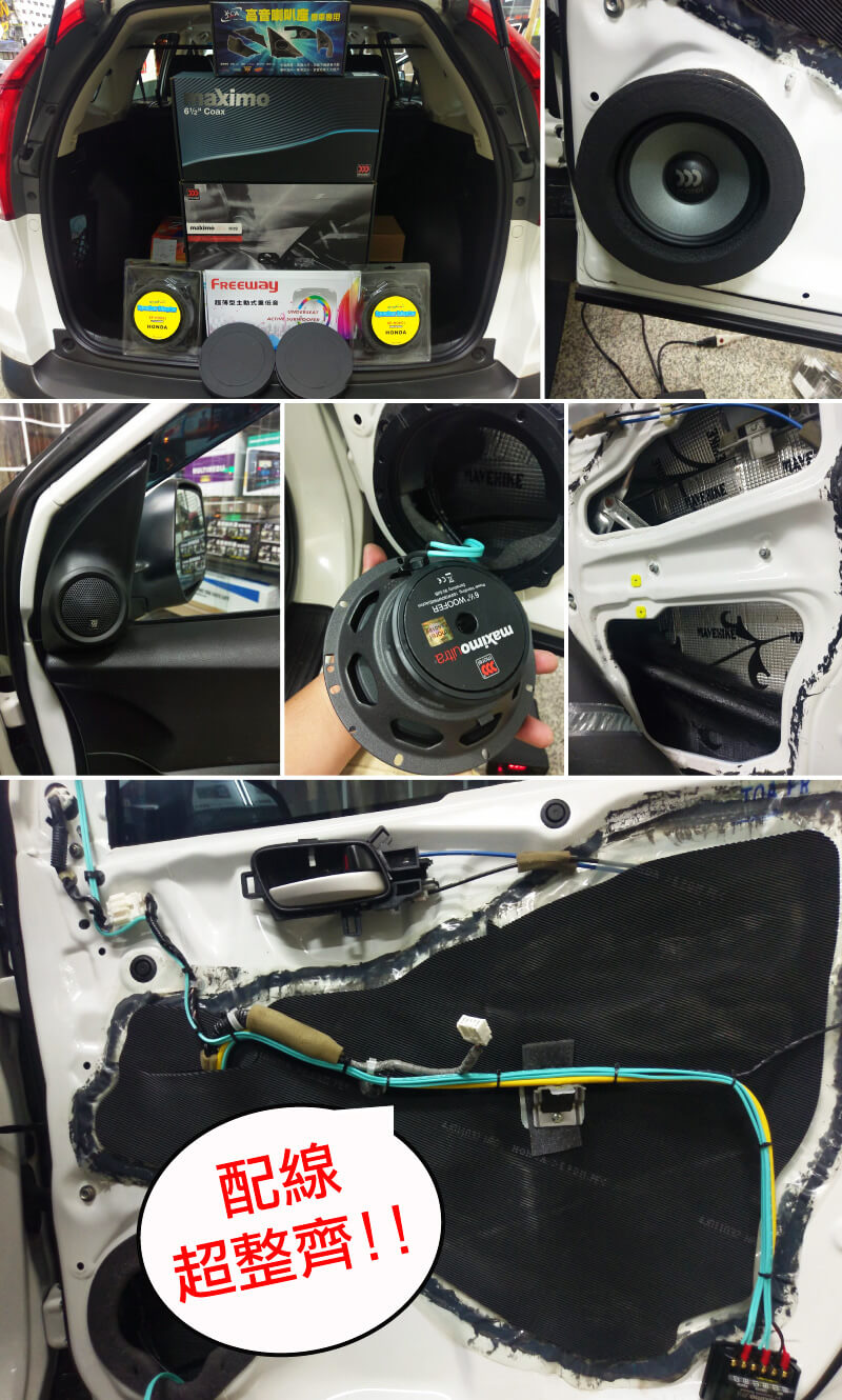 HONDA CRV4代:裝前morel~maximo ultra分音喇叭/後morel~maximo Coax同軸喇叭/Freeway椅子下重低音/專用喇叭框➕專用高音座/前門內鐵馬福駭客隔音