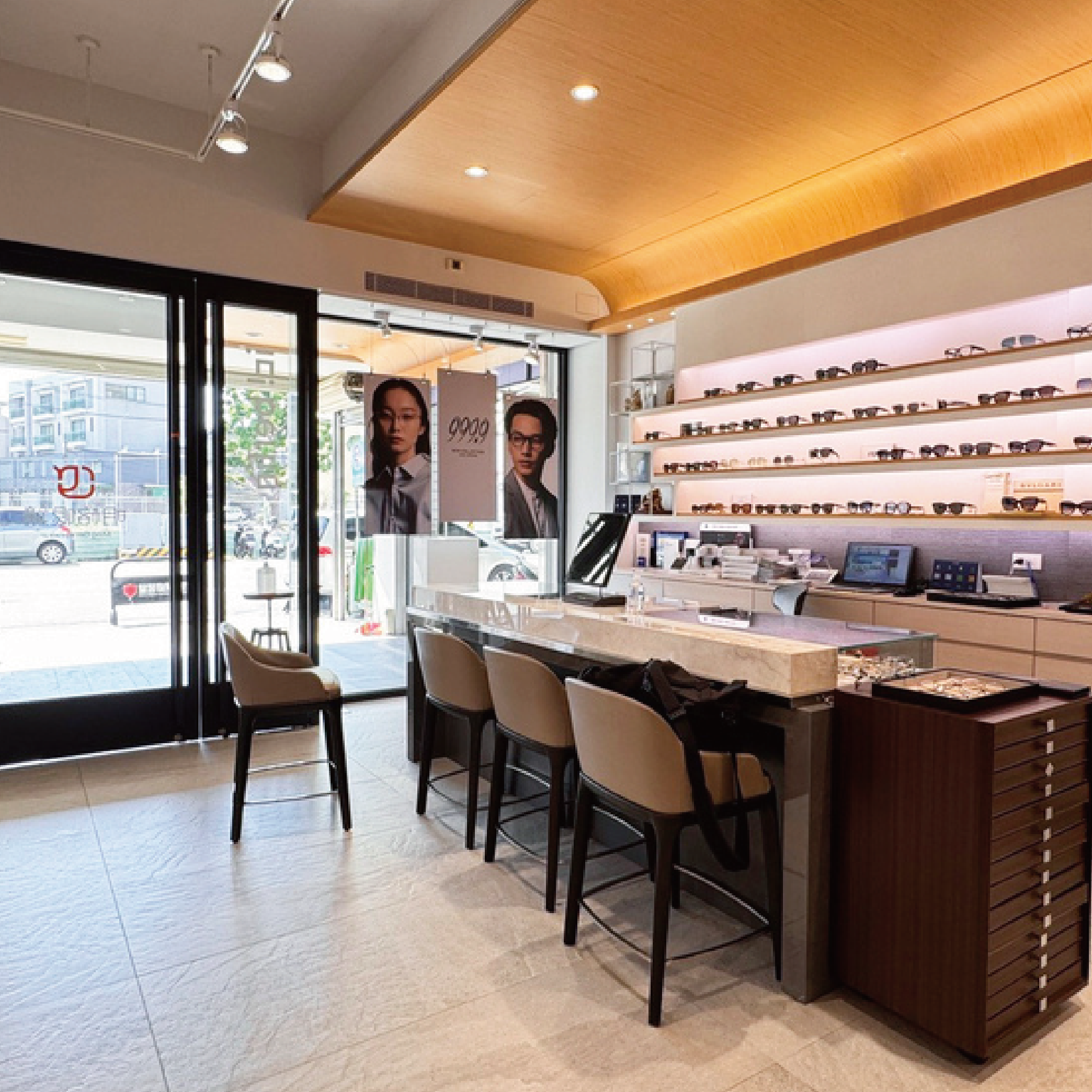店內品牌陣容也令人驚艷:丹麥的 Lindberg、德國的 ic! berlin、日本的 999.9、EYEVAN、I.ENOMOTO每一副都兼具工藝與設計美學。