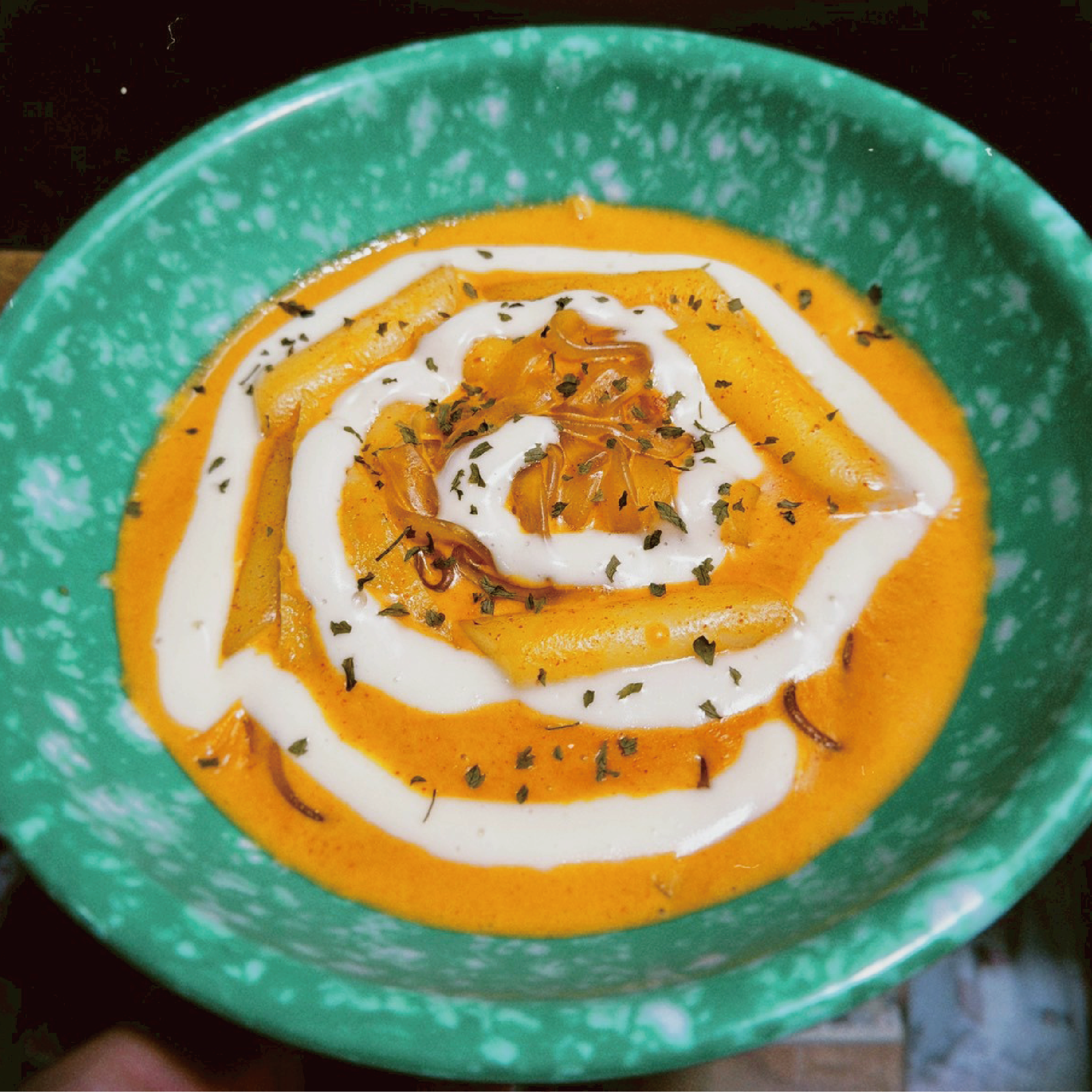淋上奶油醬後辣度溫和超多~想吃炒年糕但怕太辣的人可以從這道入門!