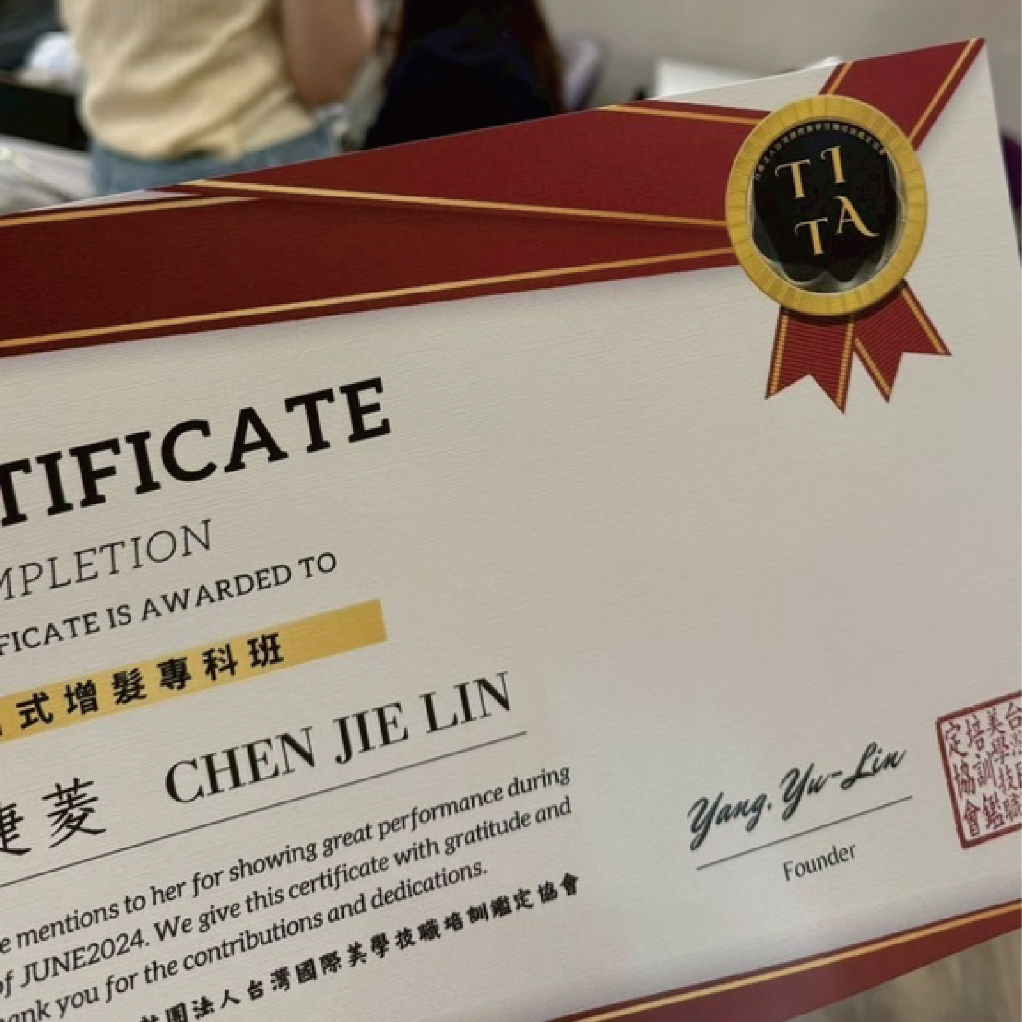 後來朋友推薦她去綝綝學院,問問右琳老師有沒有什麼新課程,右琳老師超專業,一聽完我姊的需求就立刻建議她學日式增髮。